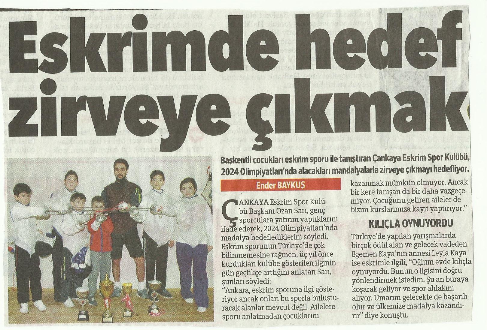 Çankaya Eskrim basında da rüzgar gibi esmeye devam ediyor. Hürriyet Ankara ekinde 15 Şubat 2013 tarihinde yer alan haberimiz aşağıdadır. Haberi yapan Ender Baykuş’a Çankaya Eskrim adına teşekkür ediyoruz.